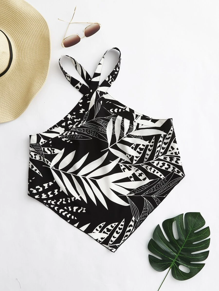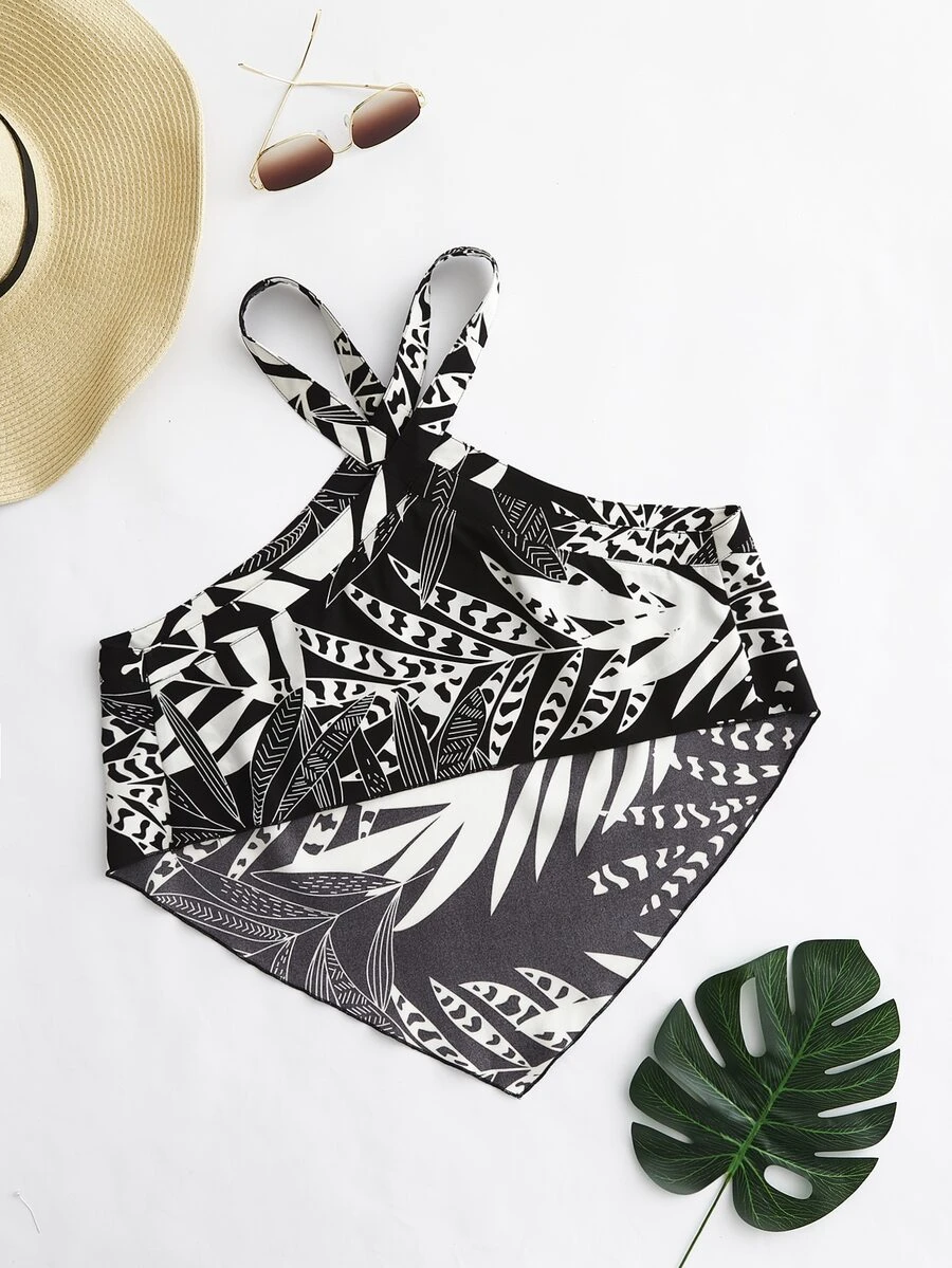 لباس علوي رسن بطباعة نباتات حافة منديل مقاس كبير