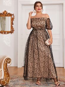 فستان باردو بلوحة شبكي بطباعة نباتات مقاس كبير