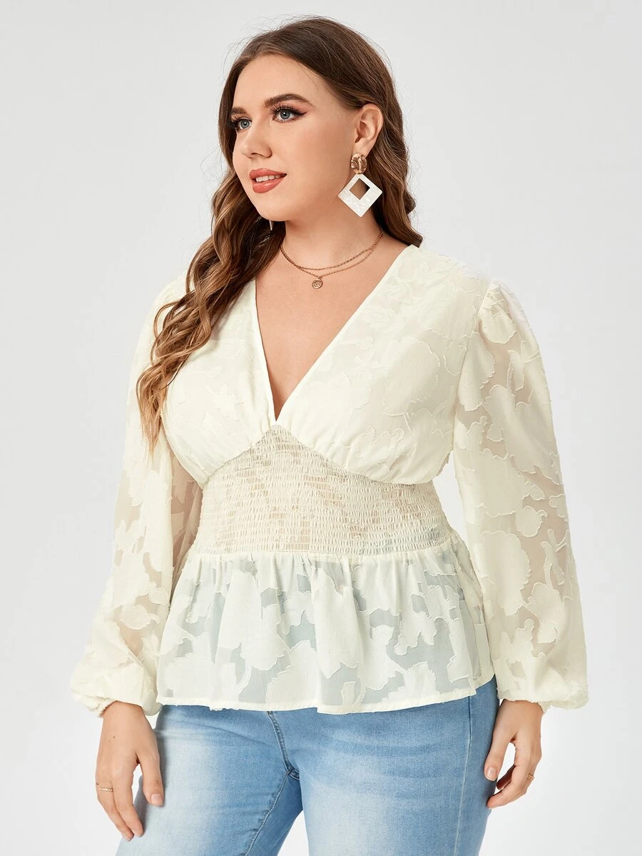 بلوزة مطوي الثنايا مدرز باكمام بيشوب بياقة مغرق مقاس كبير