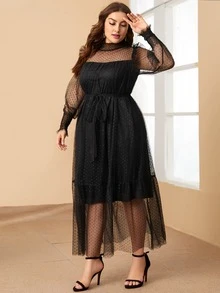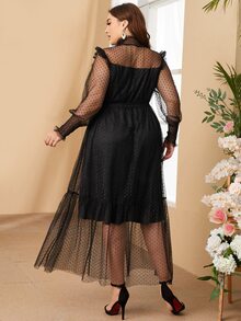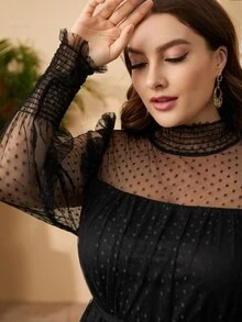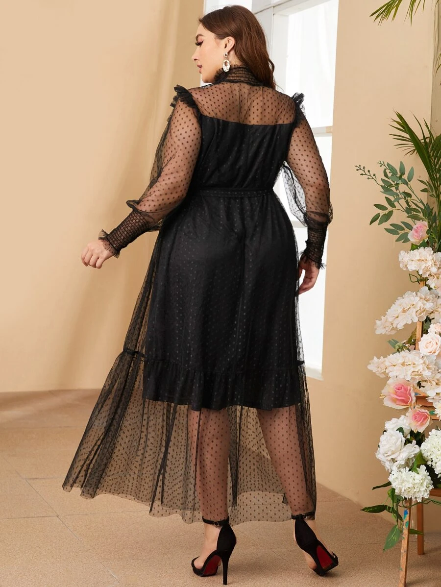 فساتين مقاسات كبيرة حزام كشكش الثوب الدانتيل منتفض طوق كشكش درز النقطة براقة