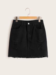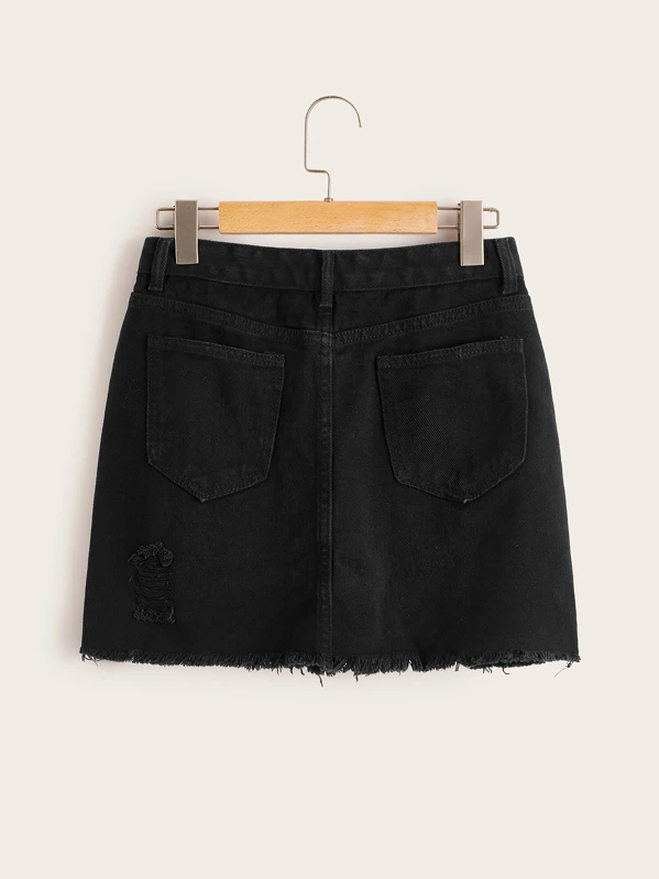 تنورة الجينز القصيرة بالممزق والحافة دون علاج والقياس الكبير