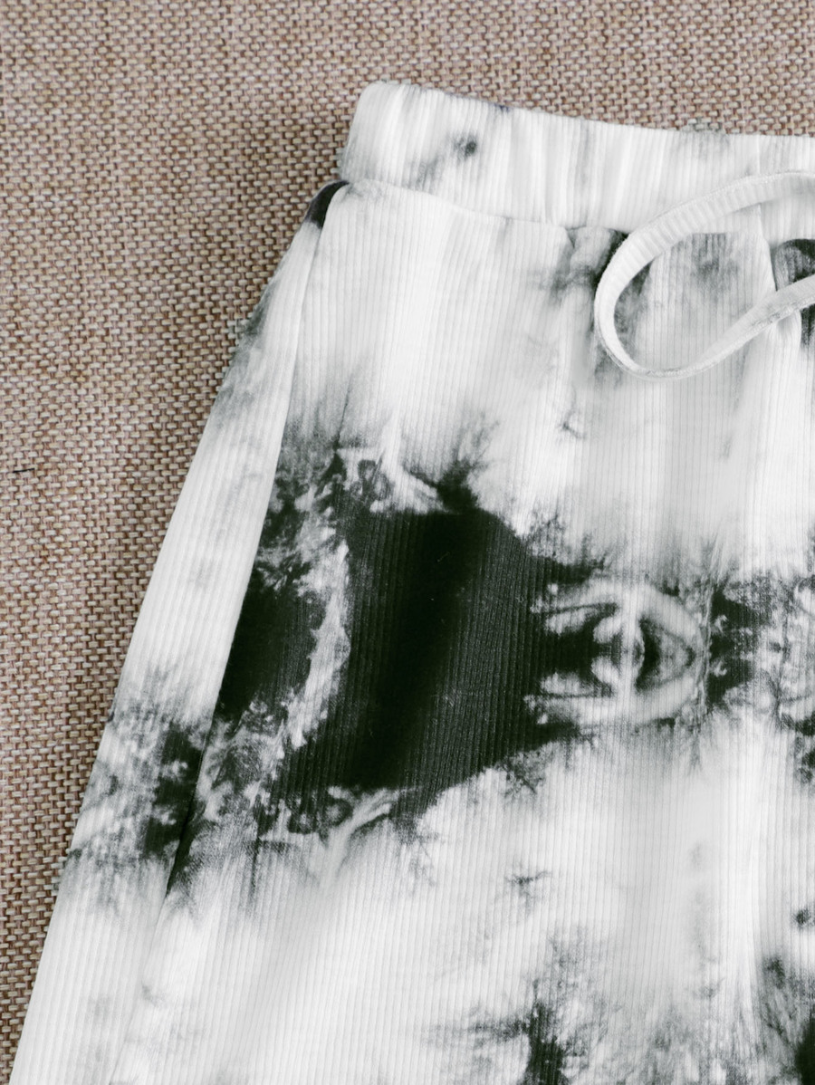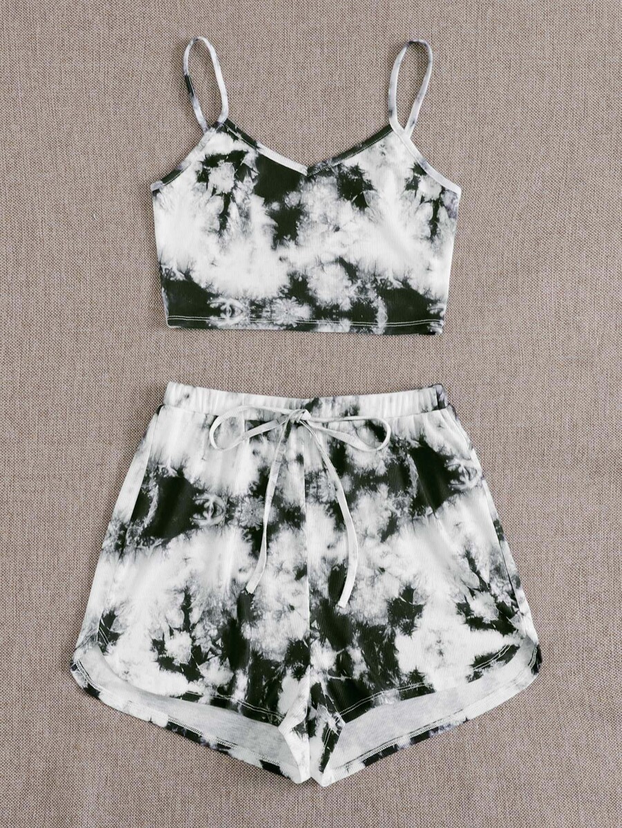 طقم شورت تريك مع لباس علوي كامي محبوك مضلع بصبغ متعادل مقاس كبير
