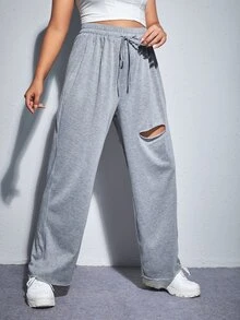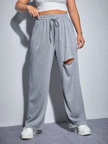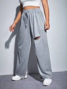 بنطلون رياضي مقاس كبير وبرباط خصر ممزق