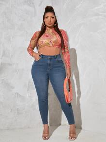 بنطلون جينز ممزق خصر عالي مقاس كبير