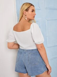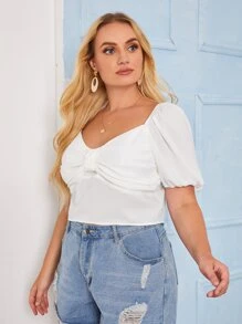 بلوزة باكمام منتفخة وبصدر مكشكش مقاس كبير