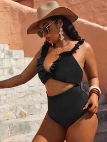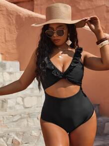 بدلة سباحة قطعة واحدة مع كشكشة وفتحات، للصيف وعطلات الشاطئ