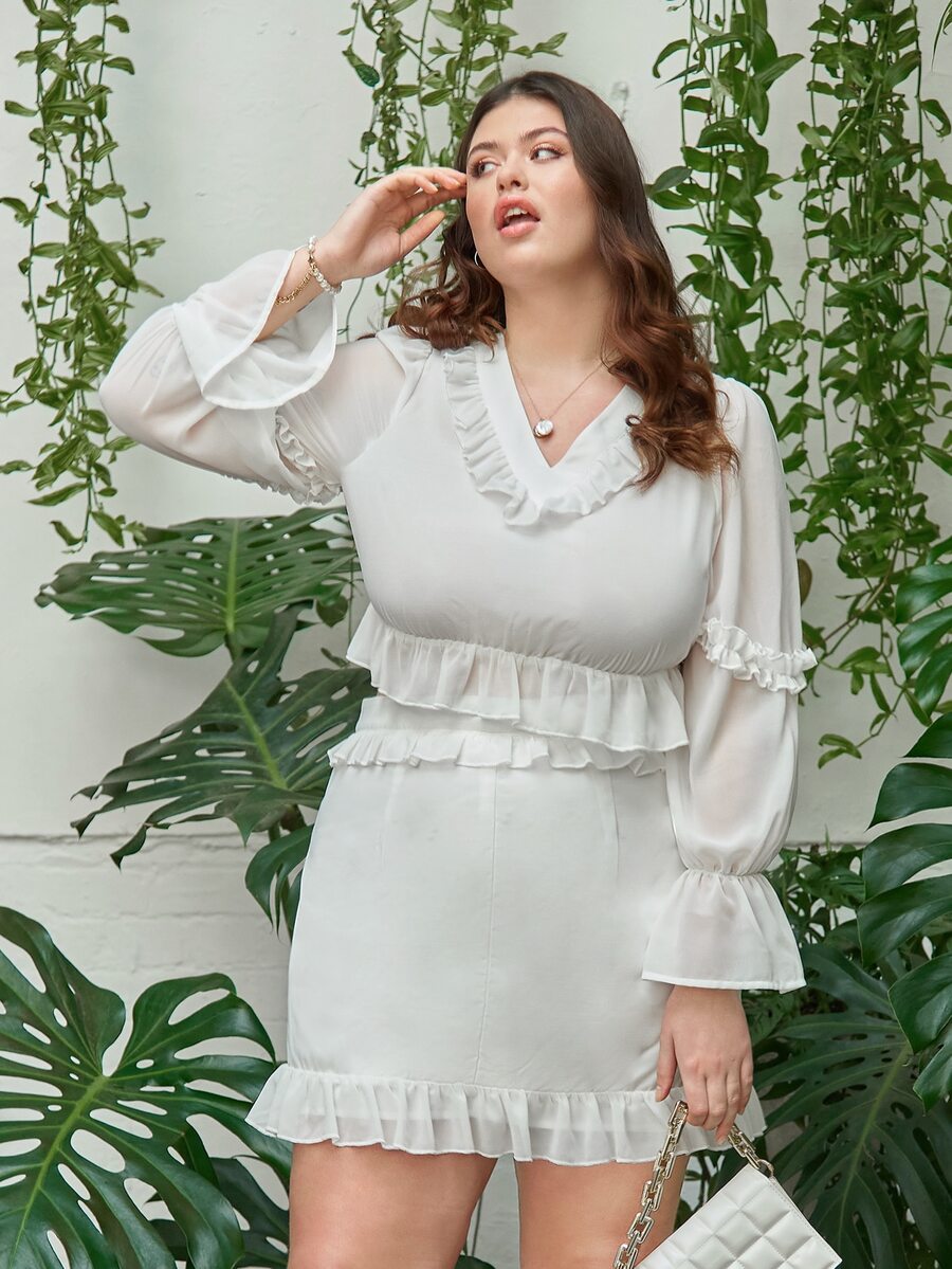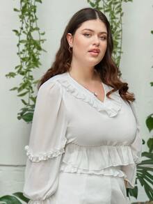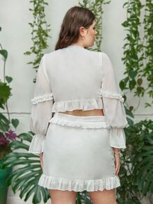 مقاس كبير مقلم بكشكش أكمام جرس لباس علوي مطوي الثنايا مع طقم تنورة