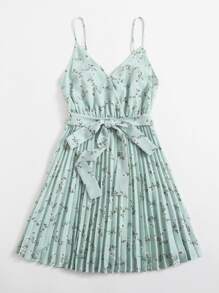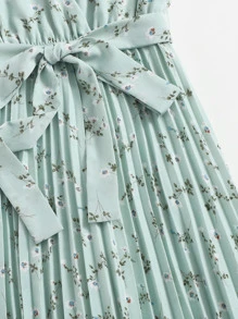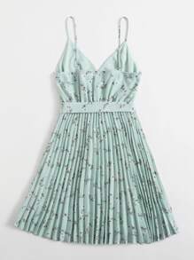 فستان كامي ذو طيات مزهر اقحوان بحزام بحزام مقاس كبير