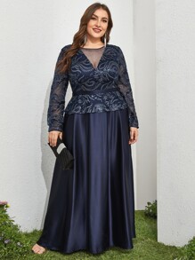 فستان مع لوحة من الشبك مطرز بالترتر، أنيق بأكمام طويلة للسهرة الرسمية، حفلات الزفاف والضيوف، مناسب للتخرج والعشاء