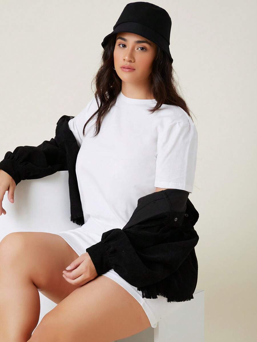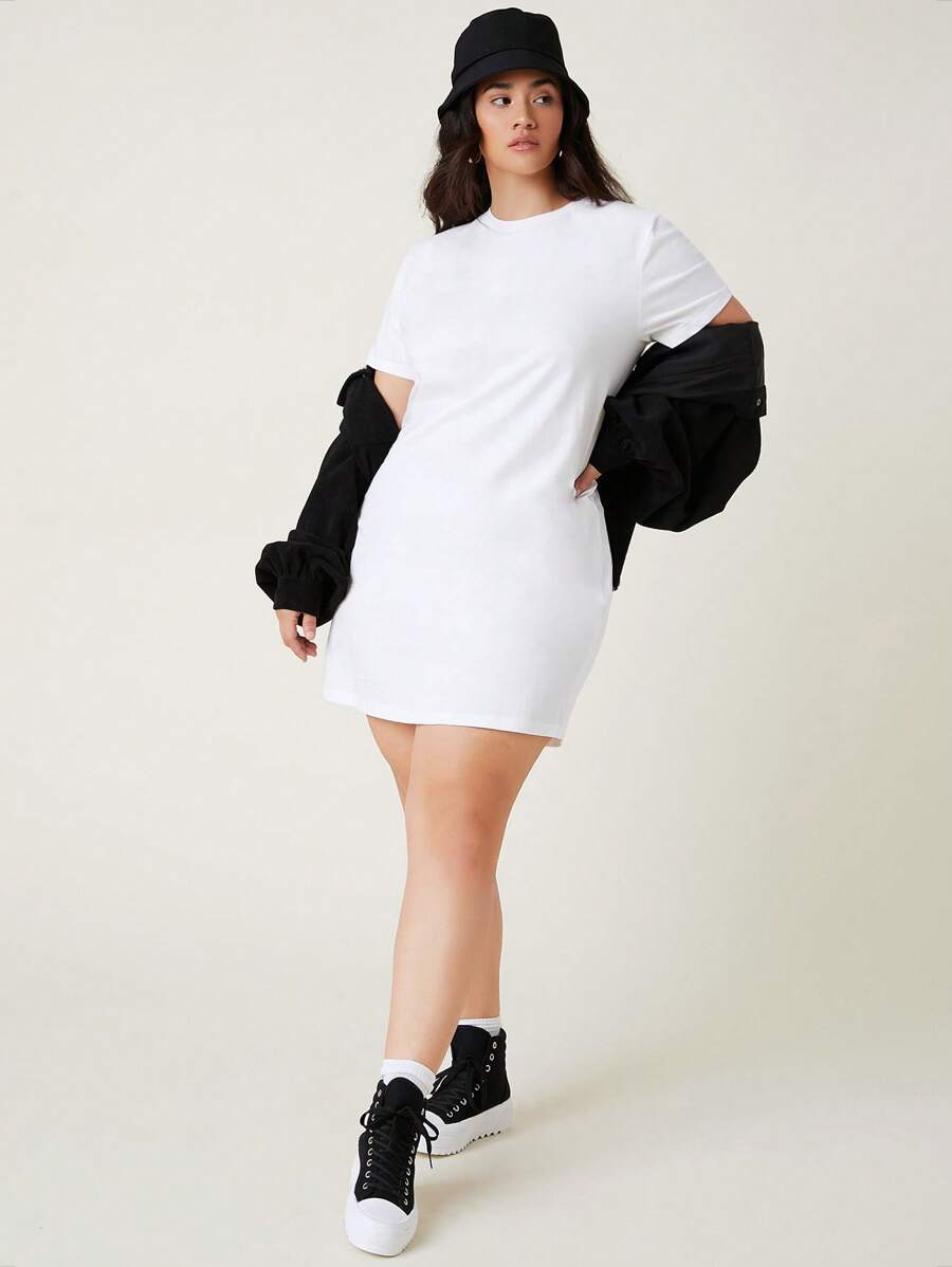 فستان تي شيرت أكمام قصيرة باللون الأحادي للصيف