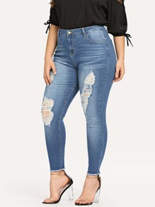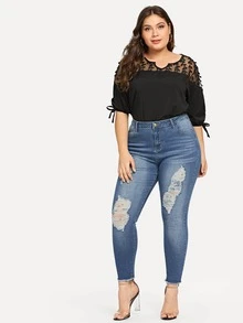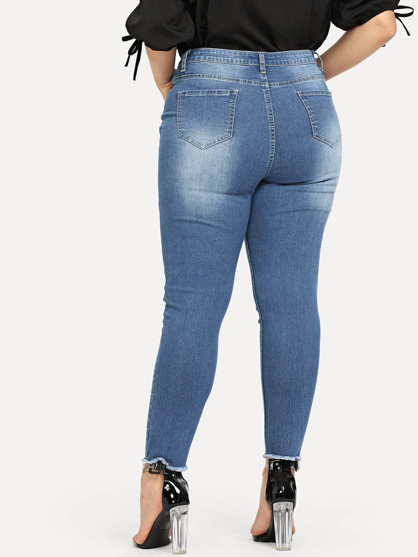 بنطلون جينز بحافة خام مقاس كبير ومدرز
