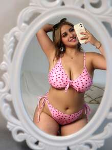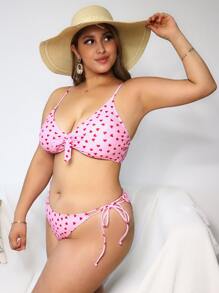 مجموعة بكيني ذو خيط جانبي بطباعة قلوب متكررة مقاس كبير للصيف والشاطئ