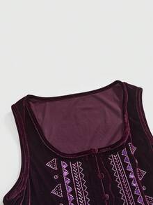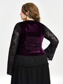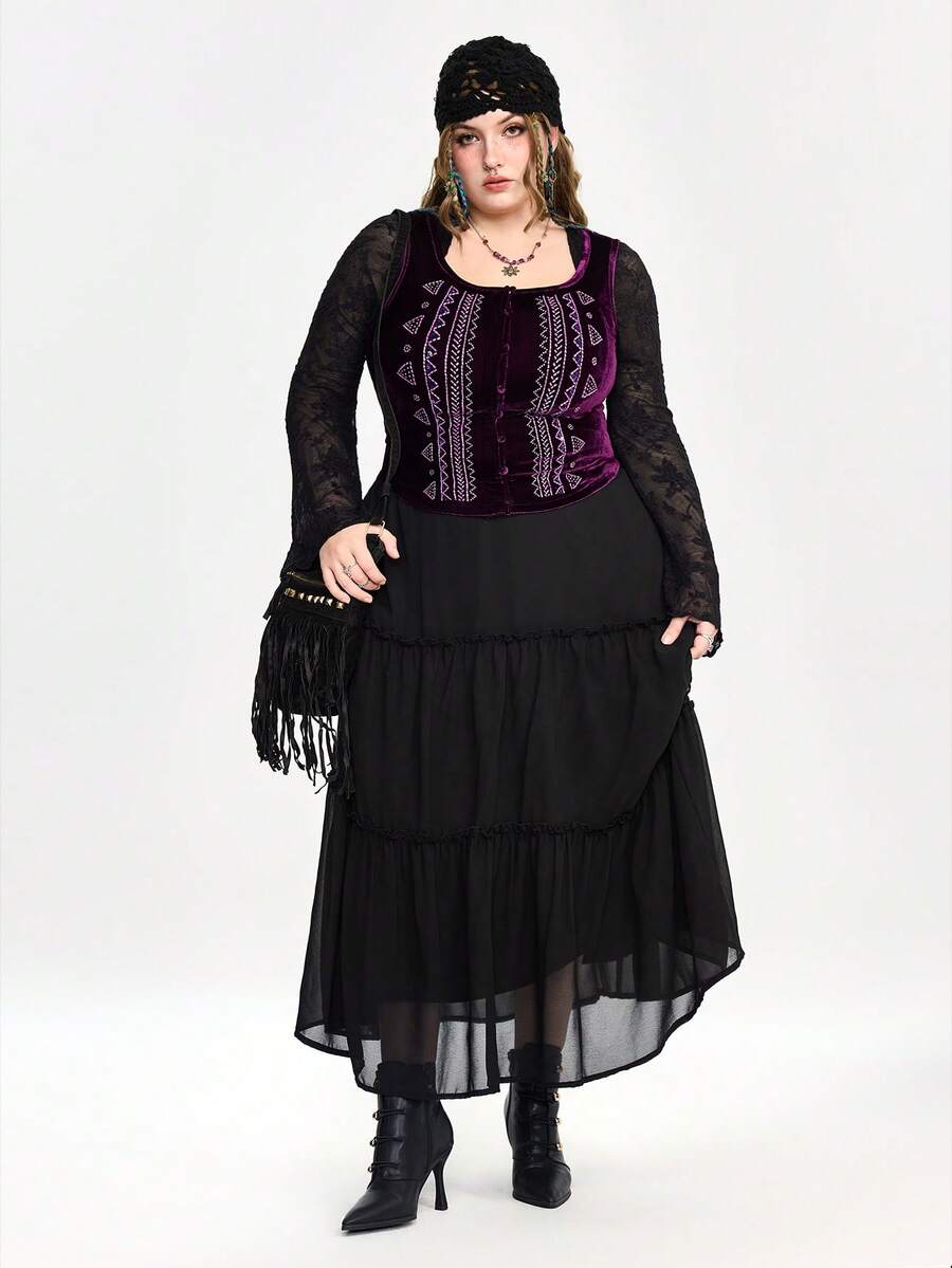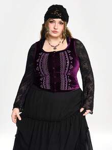 Fairycore جاكيت صدرية بنفسجية فاخرة مطرزة بأنماط من الخرز واللامع، طراز فينتاج رومانسي للخريف/الشتاء، مقاسات كبيرة، جاكيت صدرية بنفسجية داكنة بطراز فينتاج لحفلات الجمع والسهرات، مقاسات كبيرة، جاكيت صدرية بنفسجية مخملية بدون أكمام مطرزة بالخرز، طراز فينتاج، مقاسات كبيرة