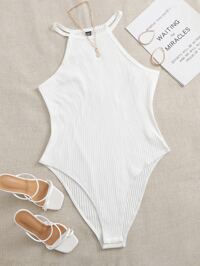 بدسويت مقاس كبير محبوك ومضلع وبعنق معلق