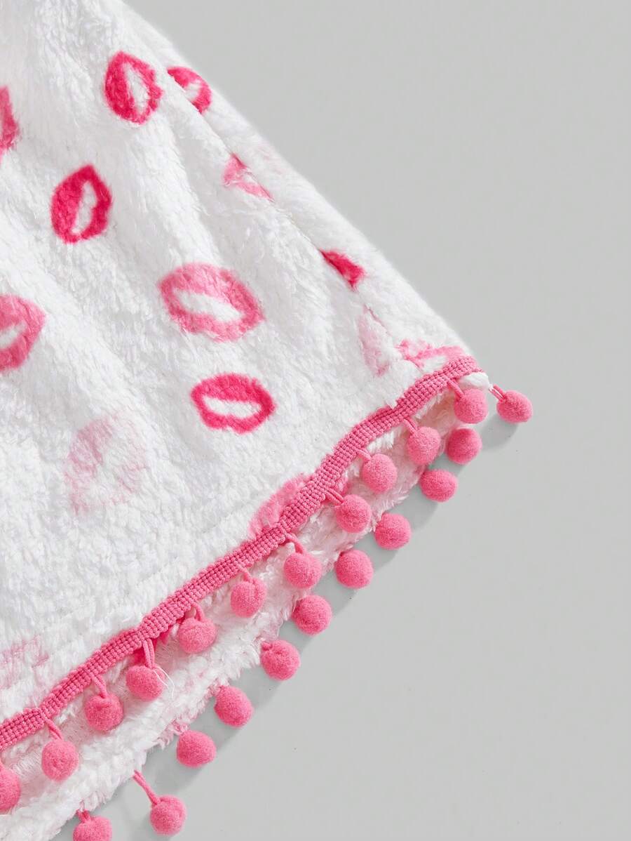 شورت مطبوع عليه صور شفاه منفوشة مزين بشرابات ُبمبوم بمقاسات كبيرة