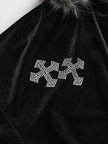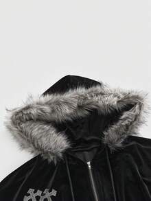 Goth هوديي كروس جوتيك فاخر الياقة، بلوزة هوديي سوداء للمرأة البدينة، جاكيت خارجي أسود للمرأة البدينة للخريف/الشتاء