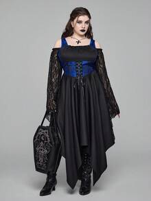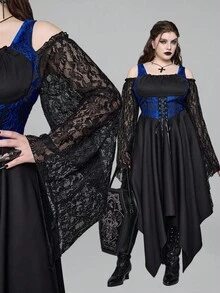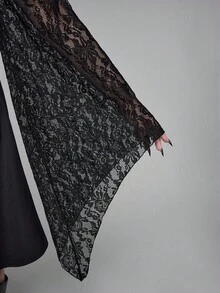 EDITION فستان أنيق وأنيق بأكمام واسعة مزخرف بالزهور والدانتيل بطراز جوتيك، فستان طويل بخصر مربوط وذيل غير متماثل للموسم الخريفي/الشتوي، ثوب سهرة جوتيك ريترو رسمي