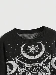Goth كنزة صوفية بلوفر أسود بطبعات نجوم وقمر وقطط سحرية لحفلات الموسيقى والاحتفالات والكريسماس، مقاسات كبيرة، كنزة صوفية بلوفر نسائية بطبعات جرافيك لحفلات وعطلات وارتداء يومي، موضة خريف/شتاء مقاسات كبيرة، بلوفر محبوك