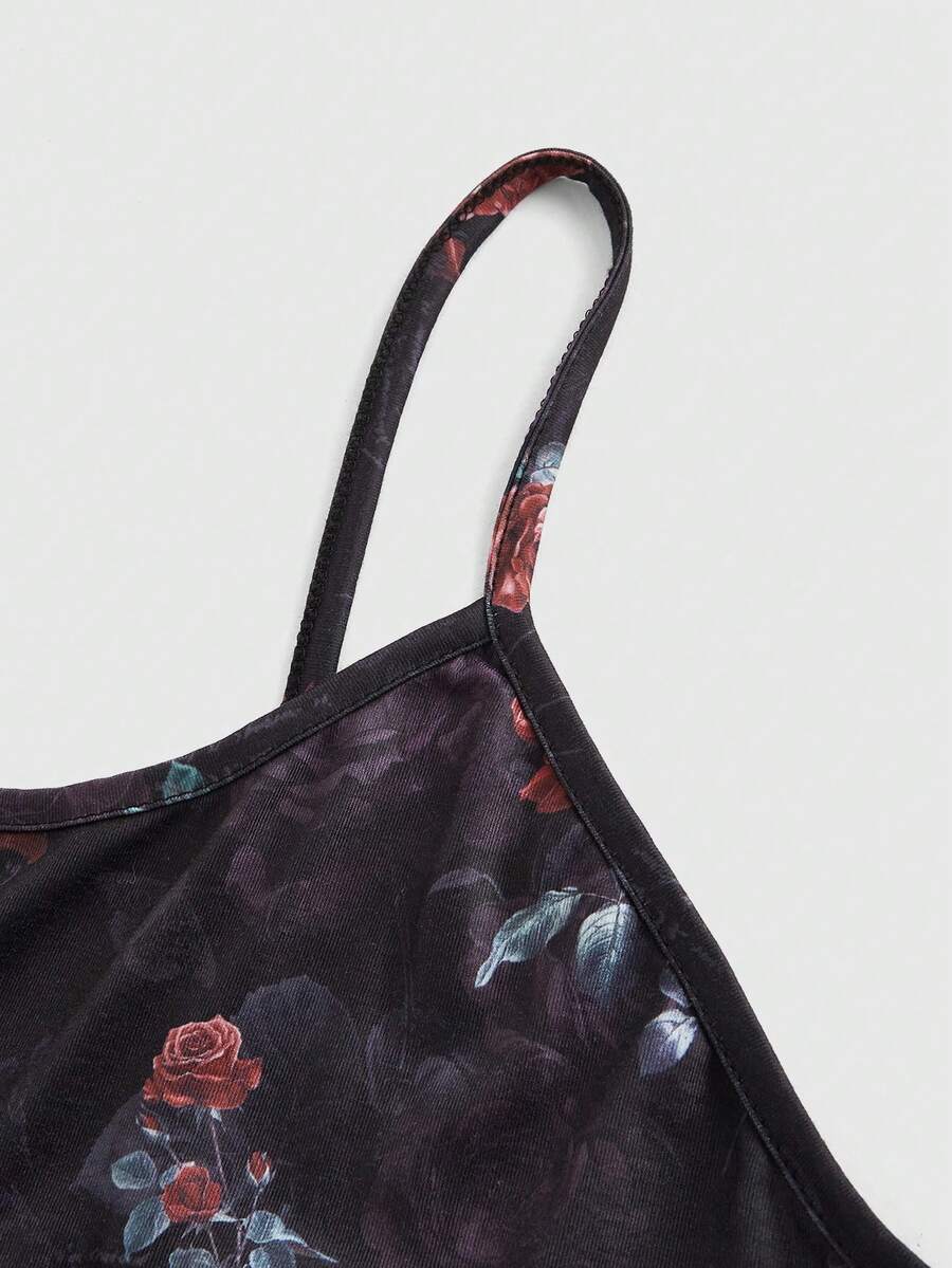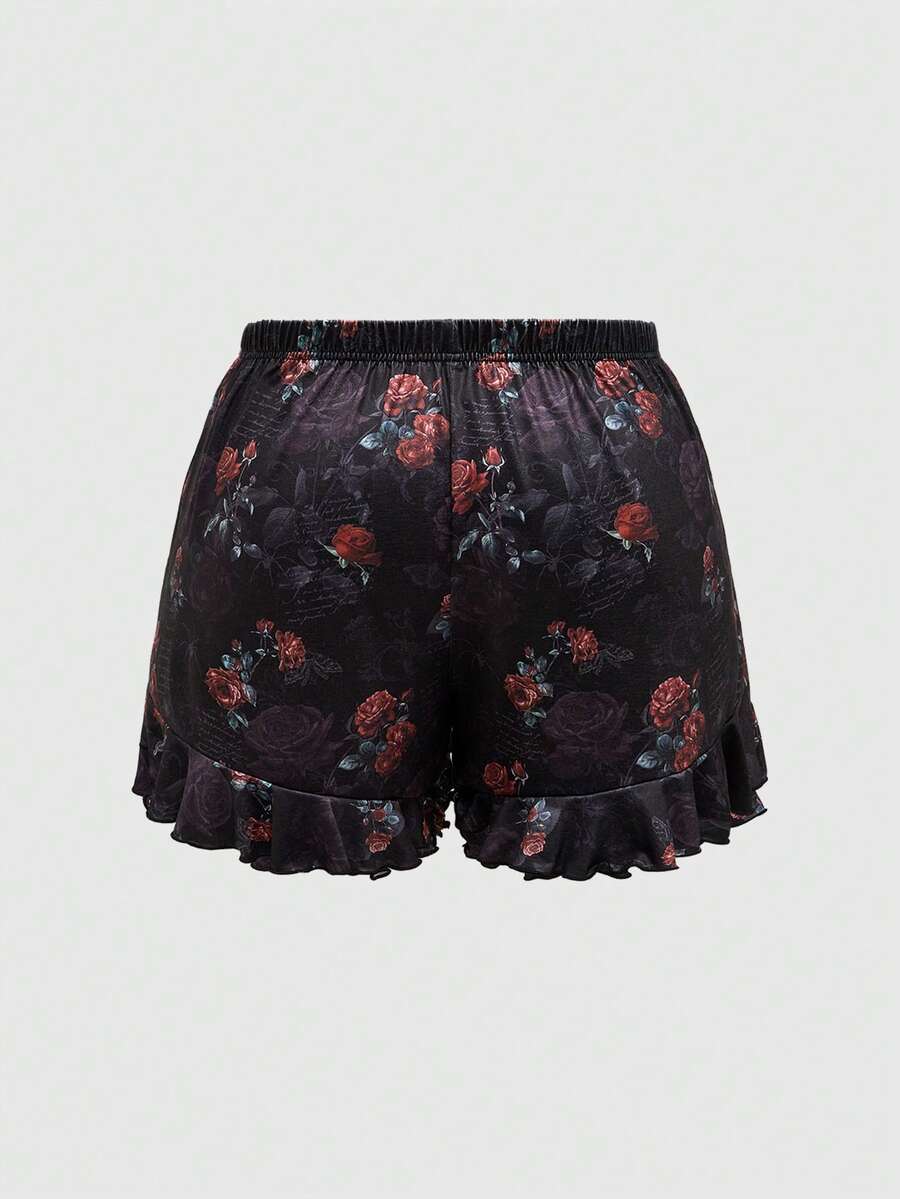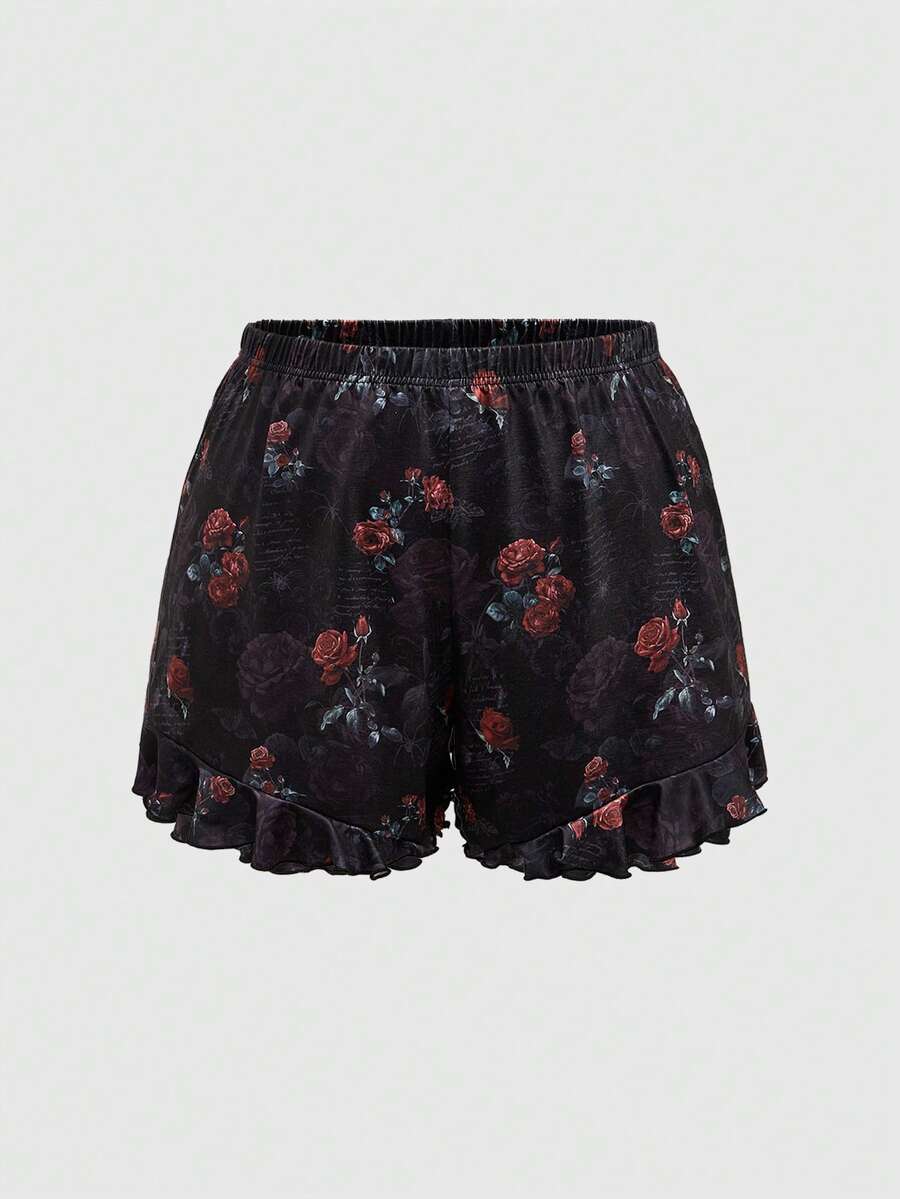 Goth مجموعة بيجاما كبيرة الحجم مطبوع عليها زيت الرسم بأزهار الورد والعنكبوت والخط الجوثيك على الكامي وشورت الريش