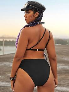 طقم بكيني كتف واحد مقاس كبير للصيف والشاطئ