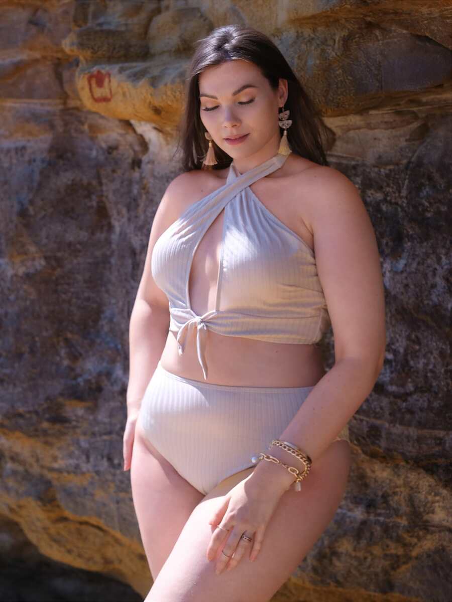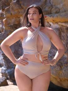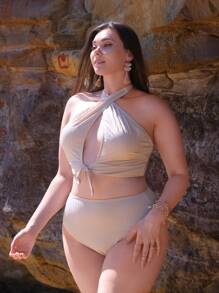 مجموعة بيكيني حريري كبير الحجم أمامي بعقدة عادي، لفصل الصيف والشاطئ