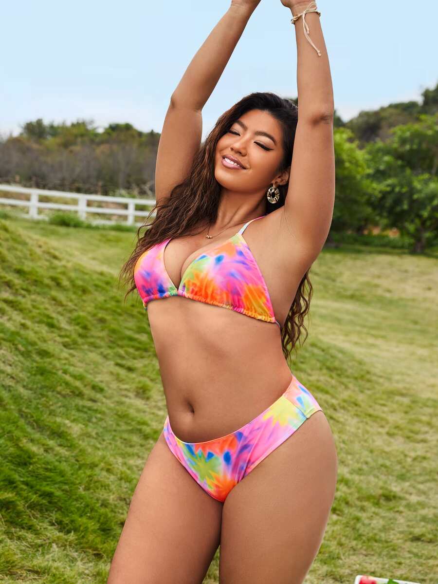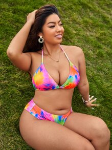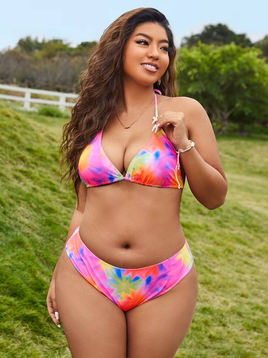 مجموعة بيكيني مقاس زائد مع ربطة عنق تعادل بتأثير تعتيم الصباغ يصلح للصيف والشاطئ