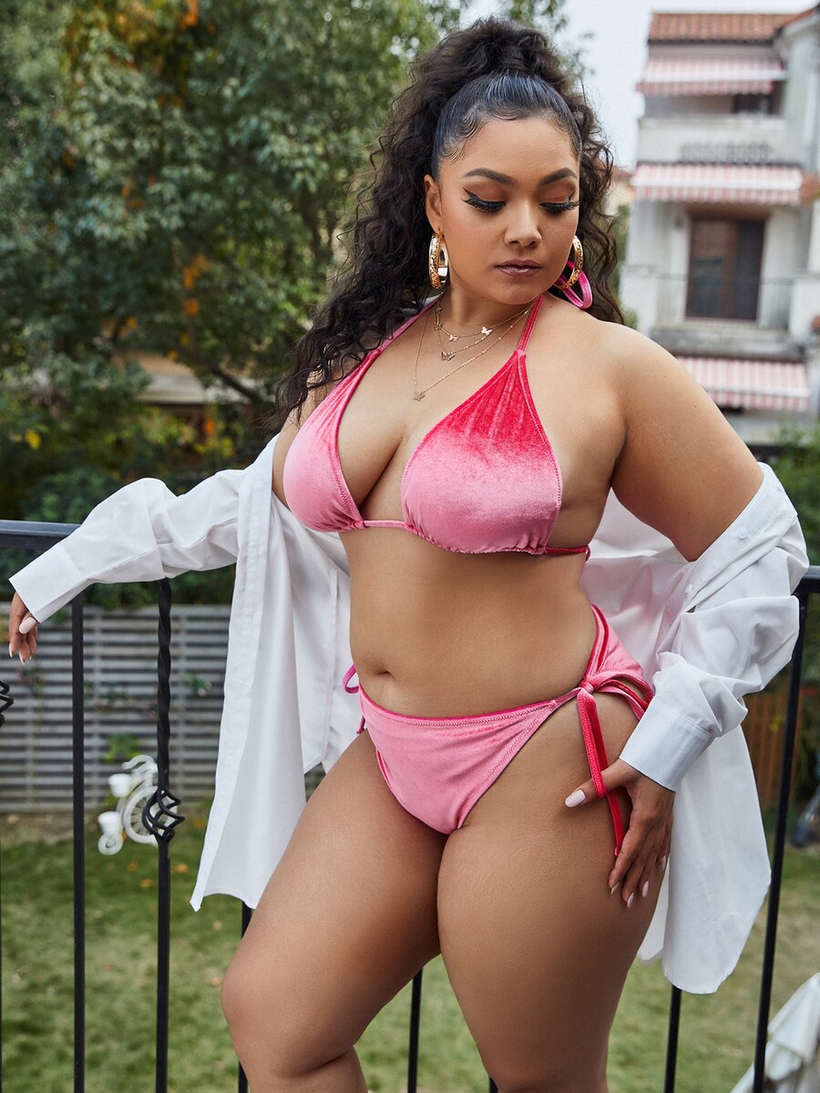 3قطعة مجموعة بكيني ربطة جانبية مثلثة مقاس كبير صيفي شاطئي