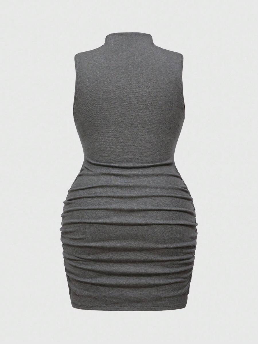 فستان قصير بتصميم أنيق وبقصة ضيقة مع تصميم مفرغ وياقة عالية مناسب لجميع المناسبات وللمقاسات الكبيرة