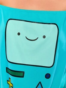 Adventure Time X ROMWE قميص كاجوال قصير الأكمام بطبعة كرتونية منفوخ الكتف للنساء ذوات الأحجام الكبيرة، صيفي