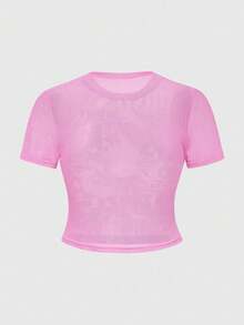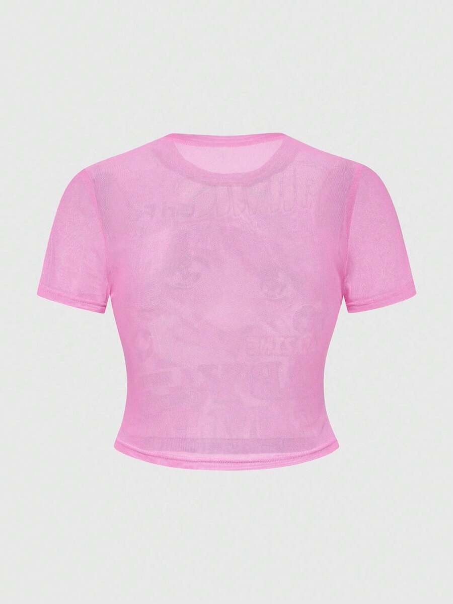 Anime ملابس علوية نسائية ضيقة مطبوعة بشخصية أنمي شفافة وجذابة للمقاسات الكبيرة، قصيرة الأكمام
