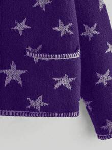 Hippie كارديجان كاجوال فضفاض بياقة طاقم وأكمام منسدلة وأزرار أمامية واحدة، بنقشة نجمية جاكار مناسب للمقاسات الكبيرة للنساء، موسم الخريف/الشتاء