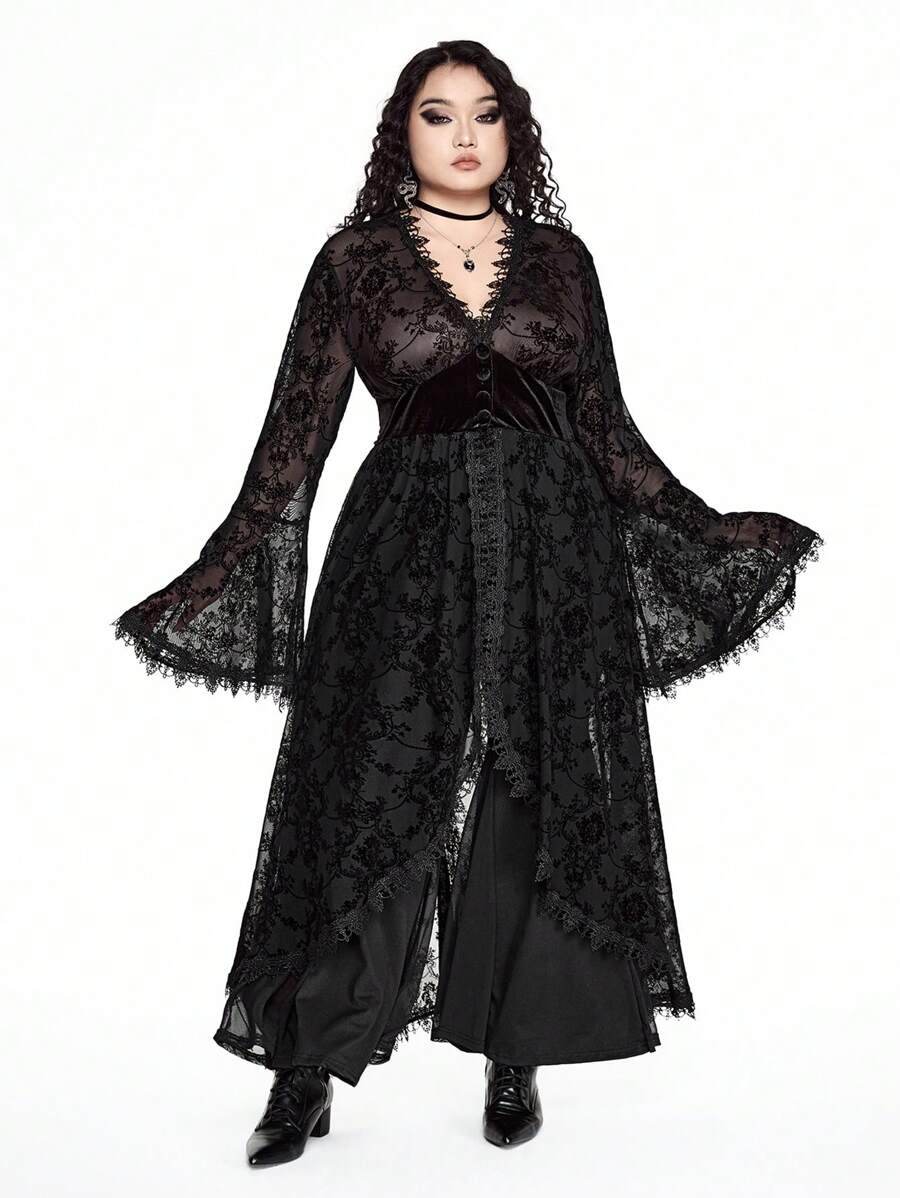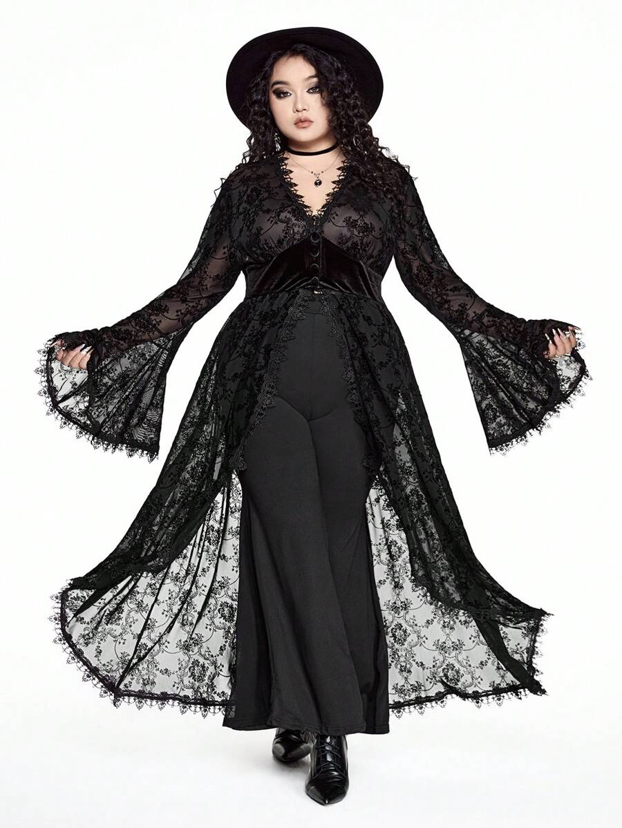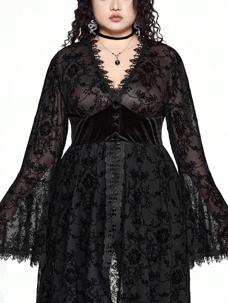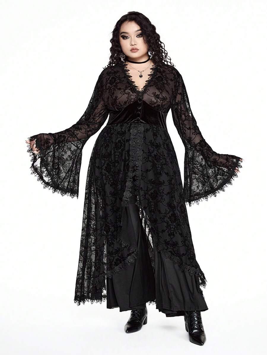 Goth فستان قطع لمرأة بحجم كبير من القطيفة والرقع غير متماثل الحواف، مخصر الخصر ذو قصة A