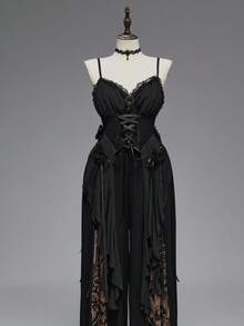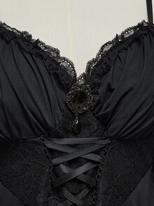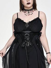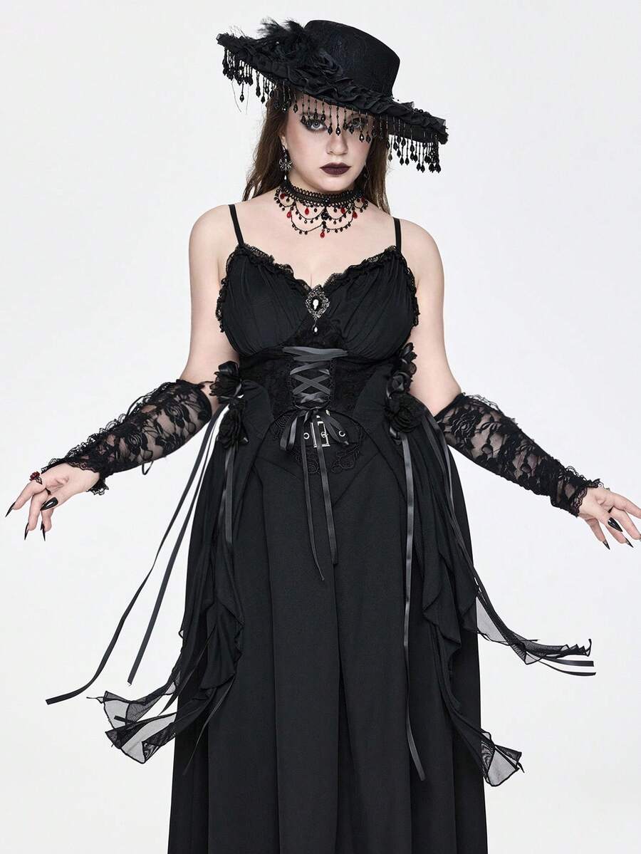 EDITION قميص نسائي كبير الحجم بتصميم جوثي فينتاج مزين بالدانتيل والوردة، ربطة الخصر، مناسب لمناسبة هالوين