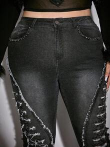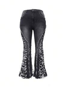 Grunge Punk سراويل جينز واسعة الساق مهترئة بطراز بانك-جرانج للنساء، بنطلون جينز عصري للخريف/الشتاء، مناسب للحفلات والتجمعات ومهرجانات الموسيقى