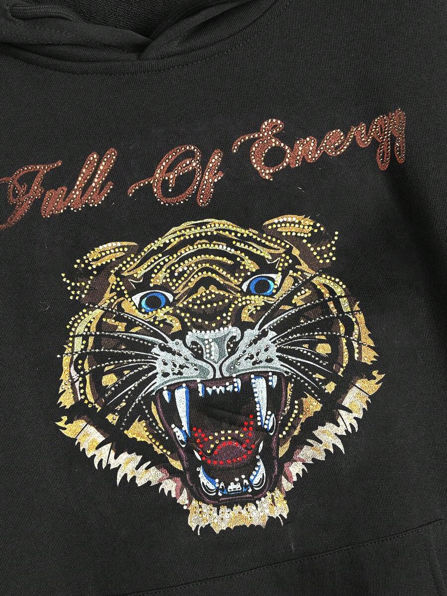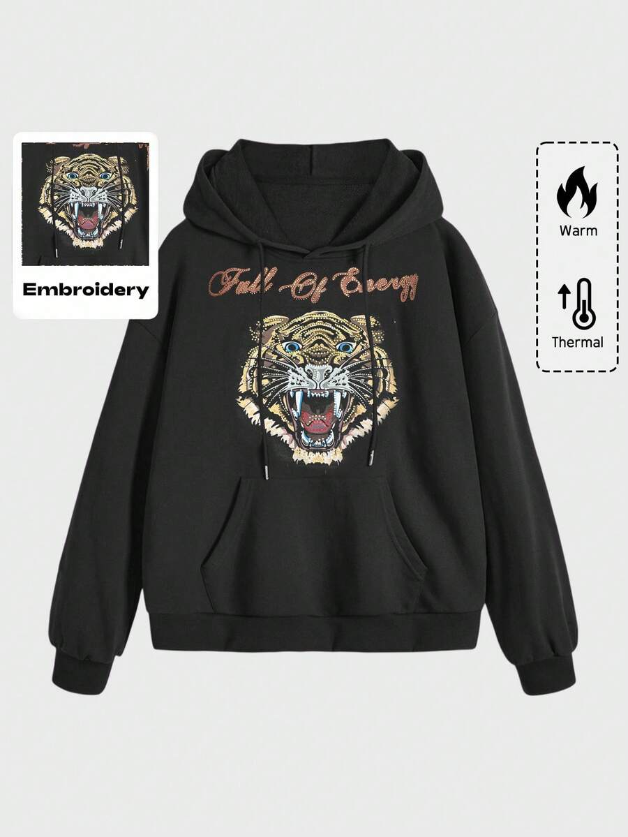 ROMWE Avant بلوزة رياضية فضفاضة مزينة بالراين ذات طبعة نمر فينتاج مقاس كبير