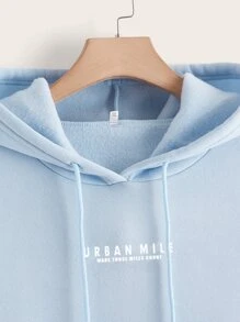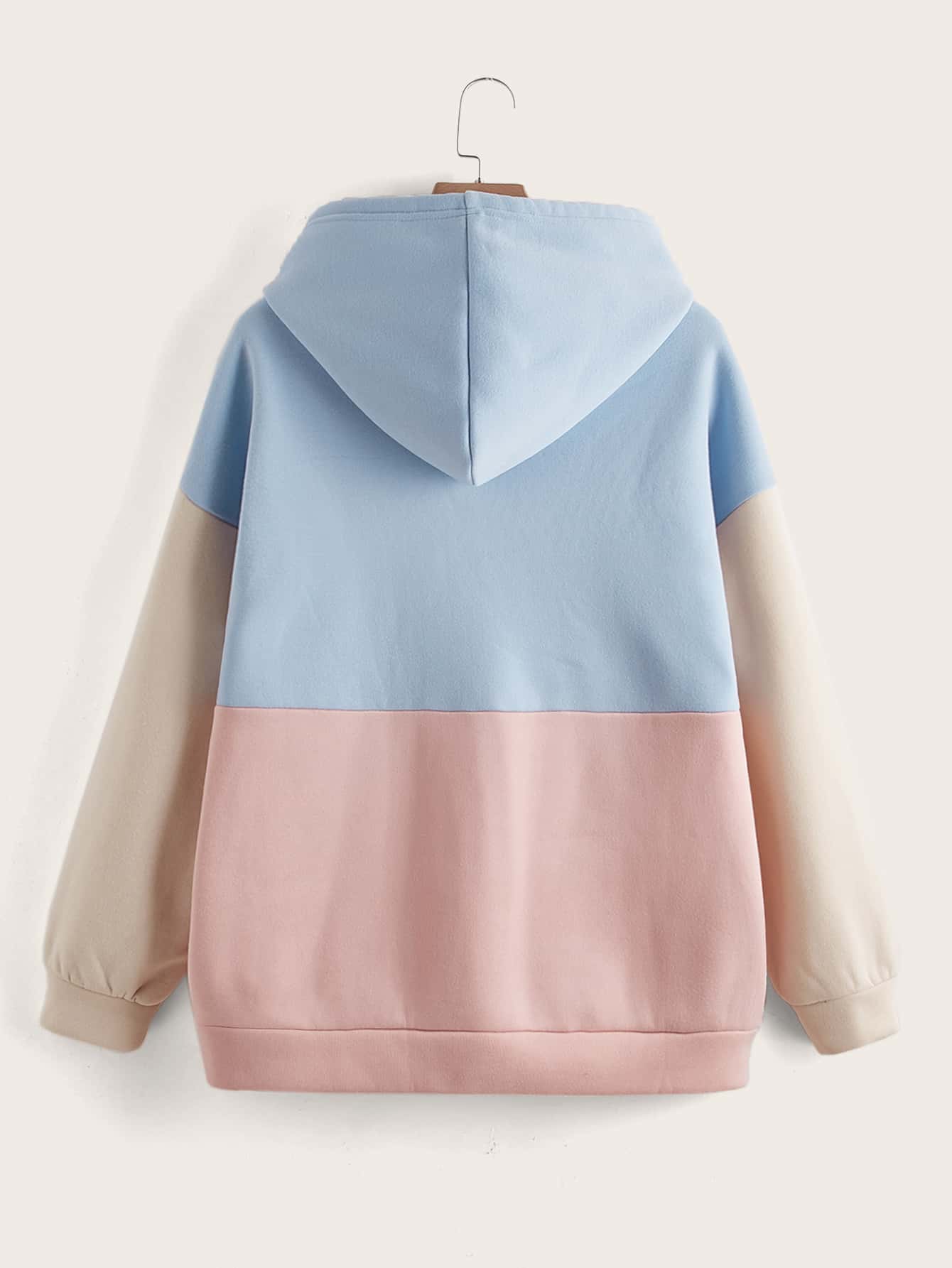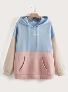 مقاس كبير هودي بطباعة شعار ألوان متباينة منخفض الاكتاف رباط مبطن حراري