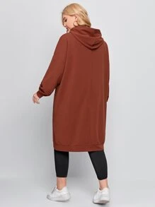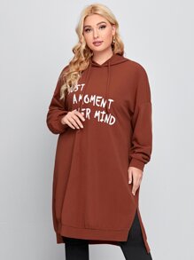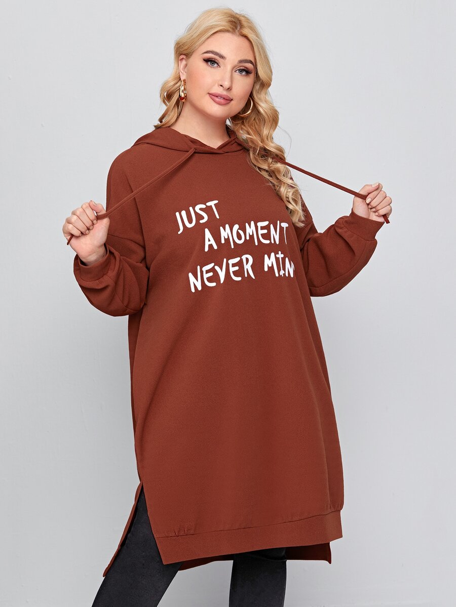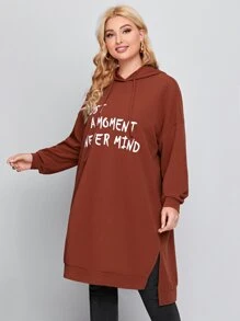 هودي طويل مشقوق جانبي وبجرافيك شعار مقاس كبير