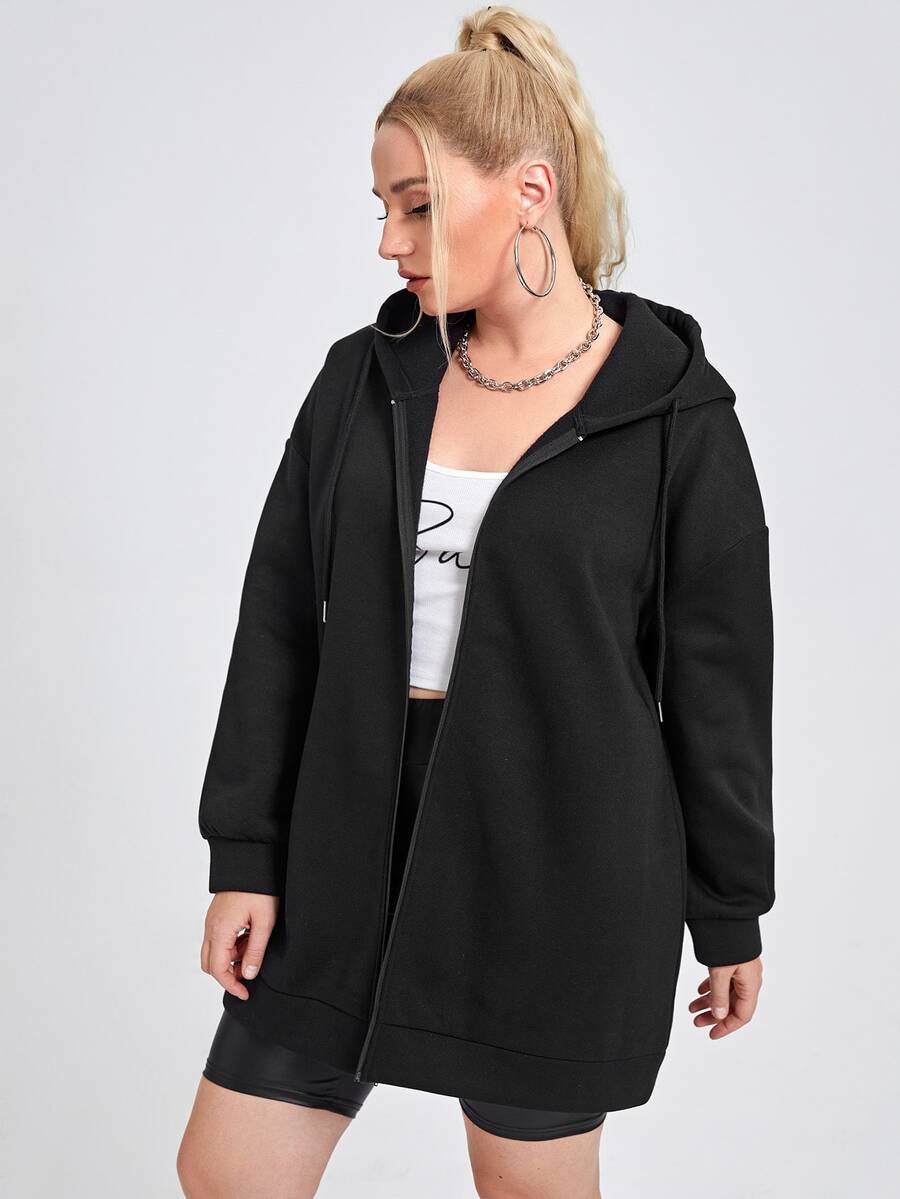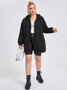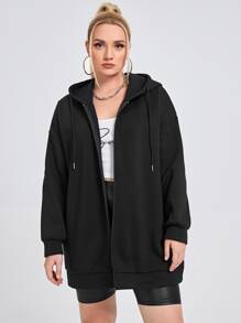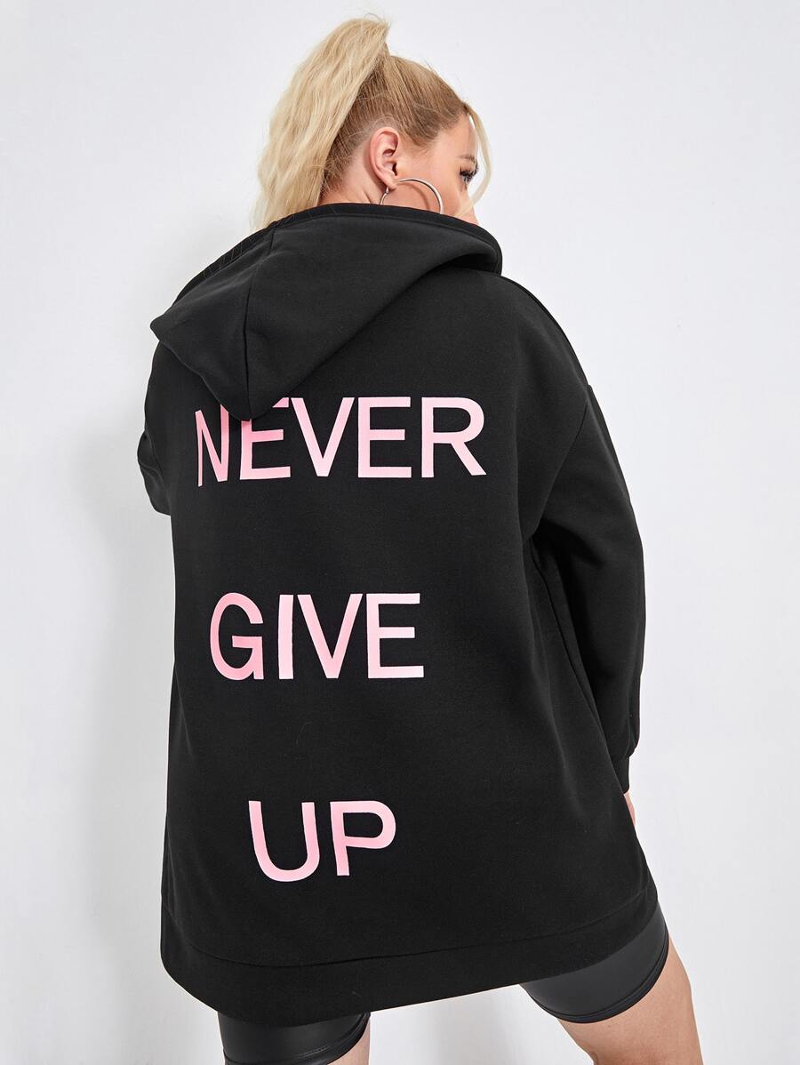 هودي مقاس كبير بسحاب برباط وبجرافيك شعار