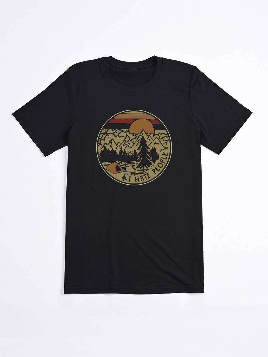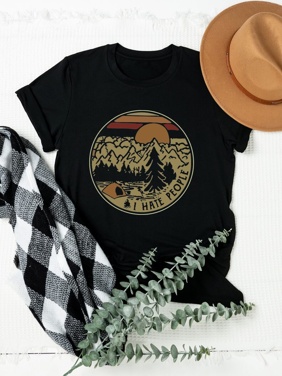 تي شيرت شعار مع أشجار طباعة مقاس كبير