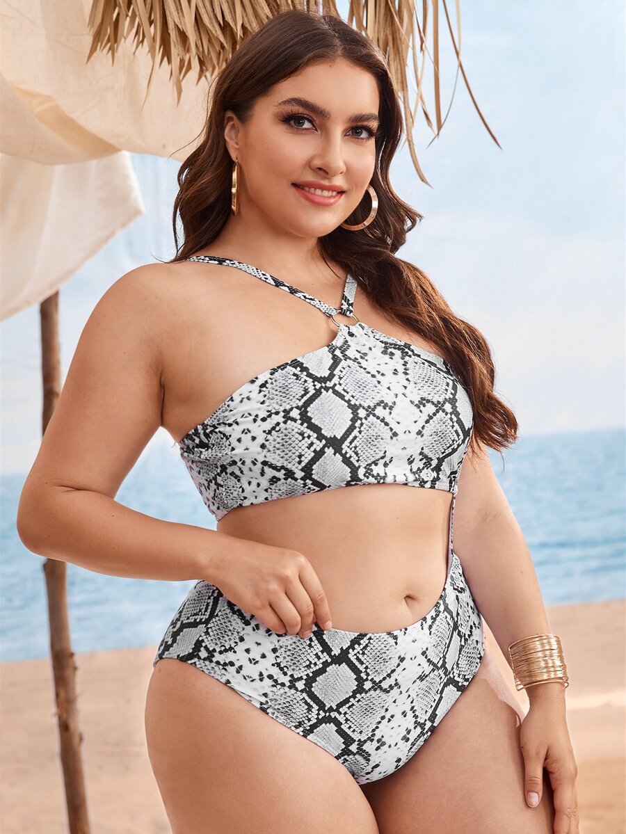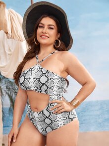 ملابس سباحة قطعة واحدة مقصوص نمط جلد ثعبان مقاس كبير