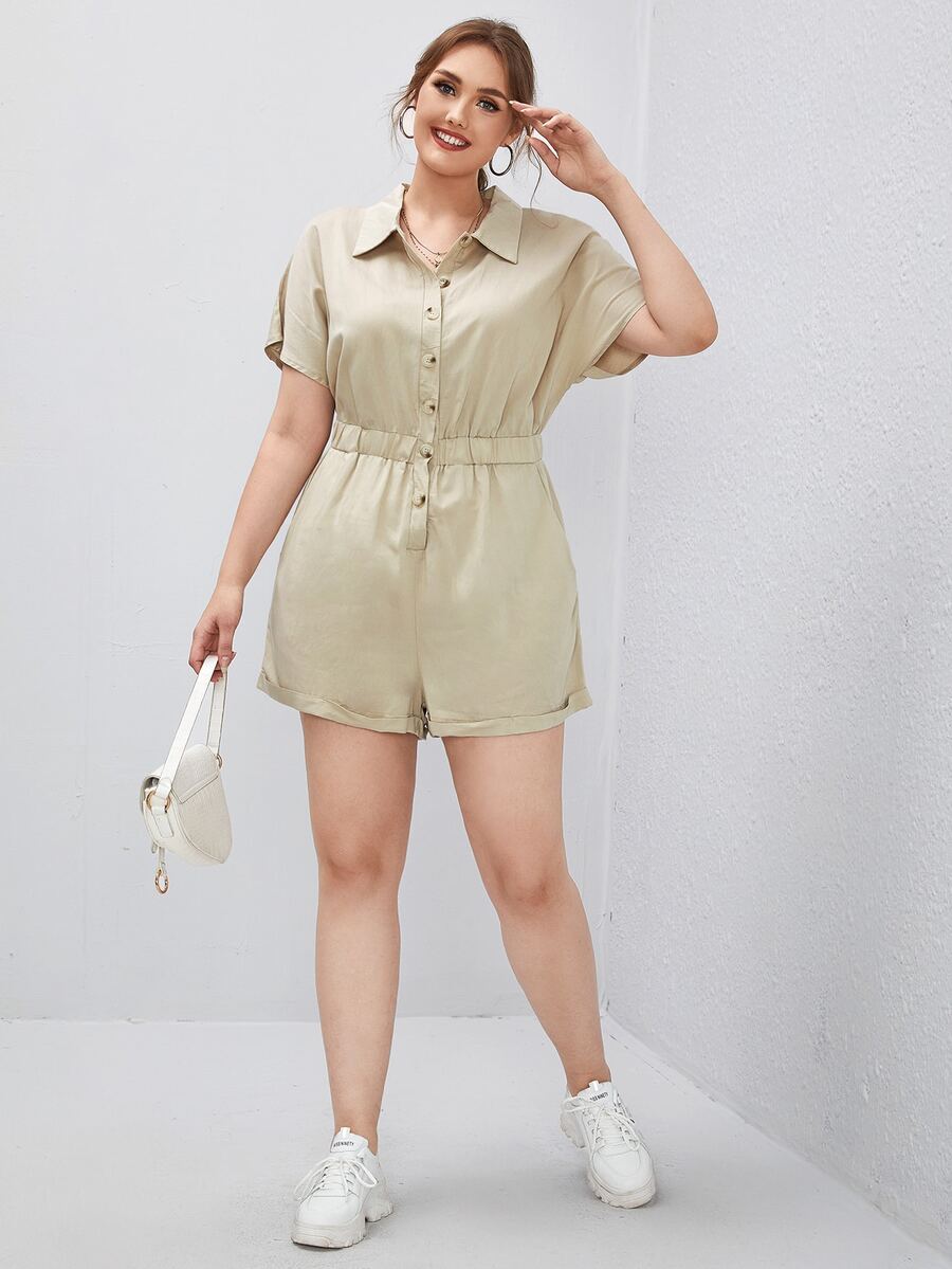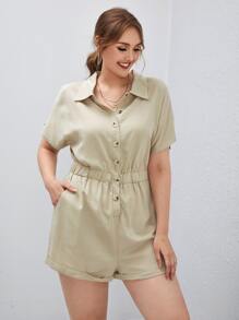 رومبير قميص بازرار امامي بلون موحد مقاس كبير