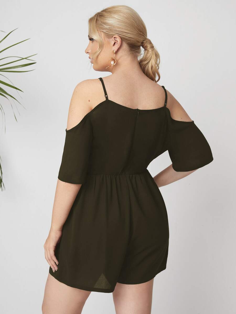 رومبير مكشوف الاكتاف بلون موحد مقاس كبير