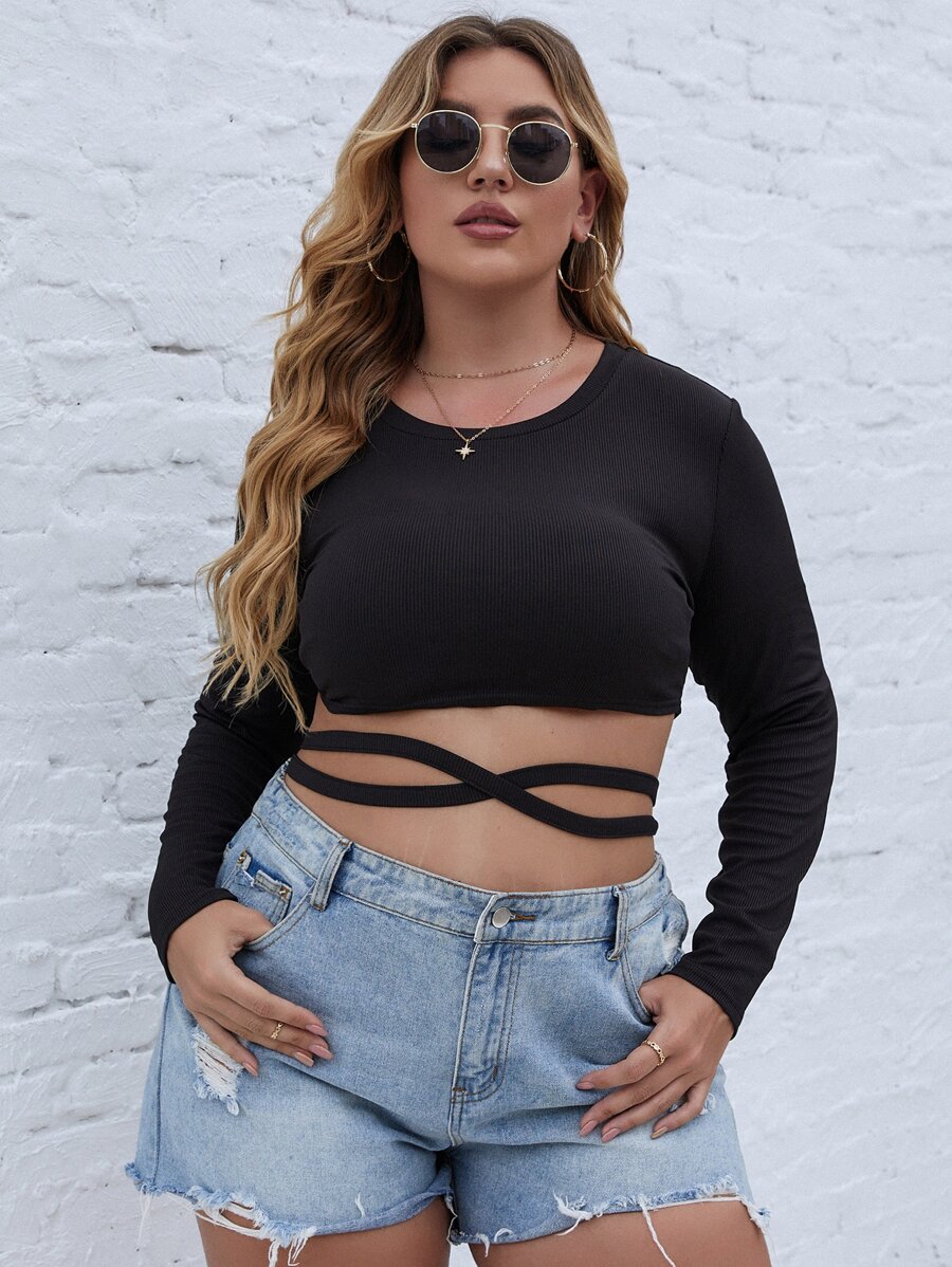 تي شيرت كروب بربطة خلفية متقاطع بلون موحد مقاس كبير