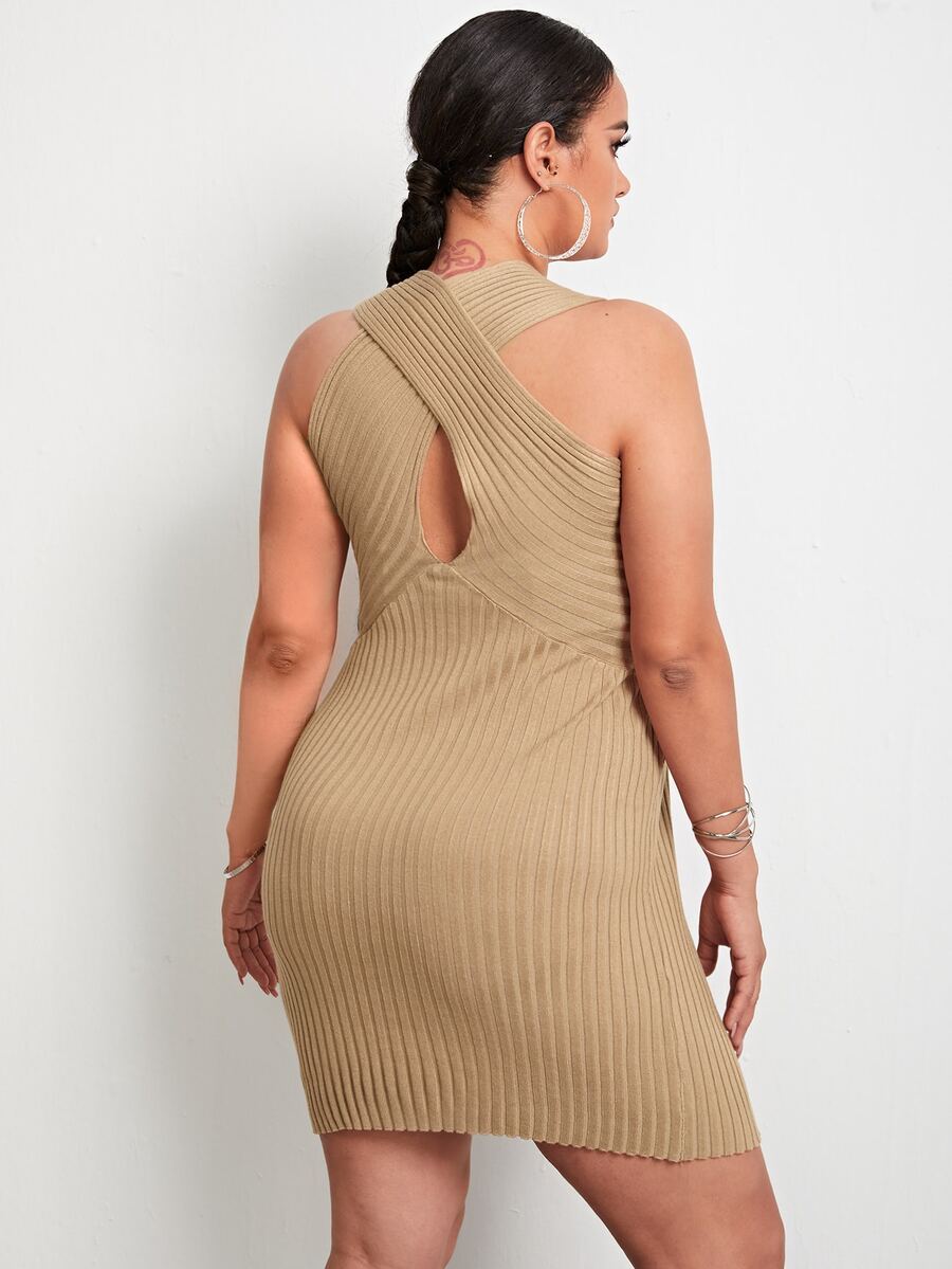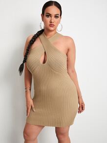 فستان بدسويت محبوك مضلع متقاطع بلون موحد مقاس كبير