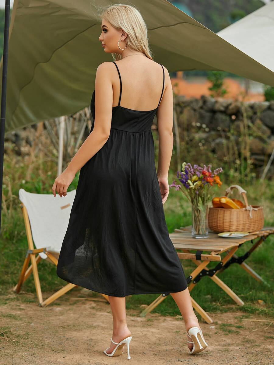 فستان كامي بحافة عالي ومنخفض بلون موحد مقاس كبير