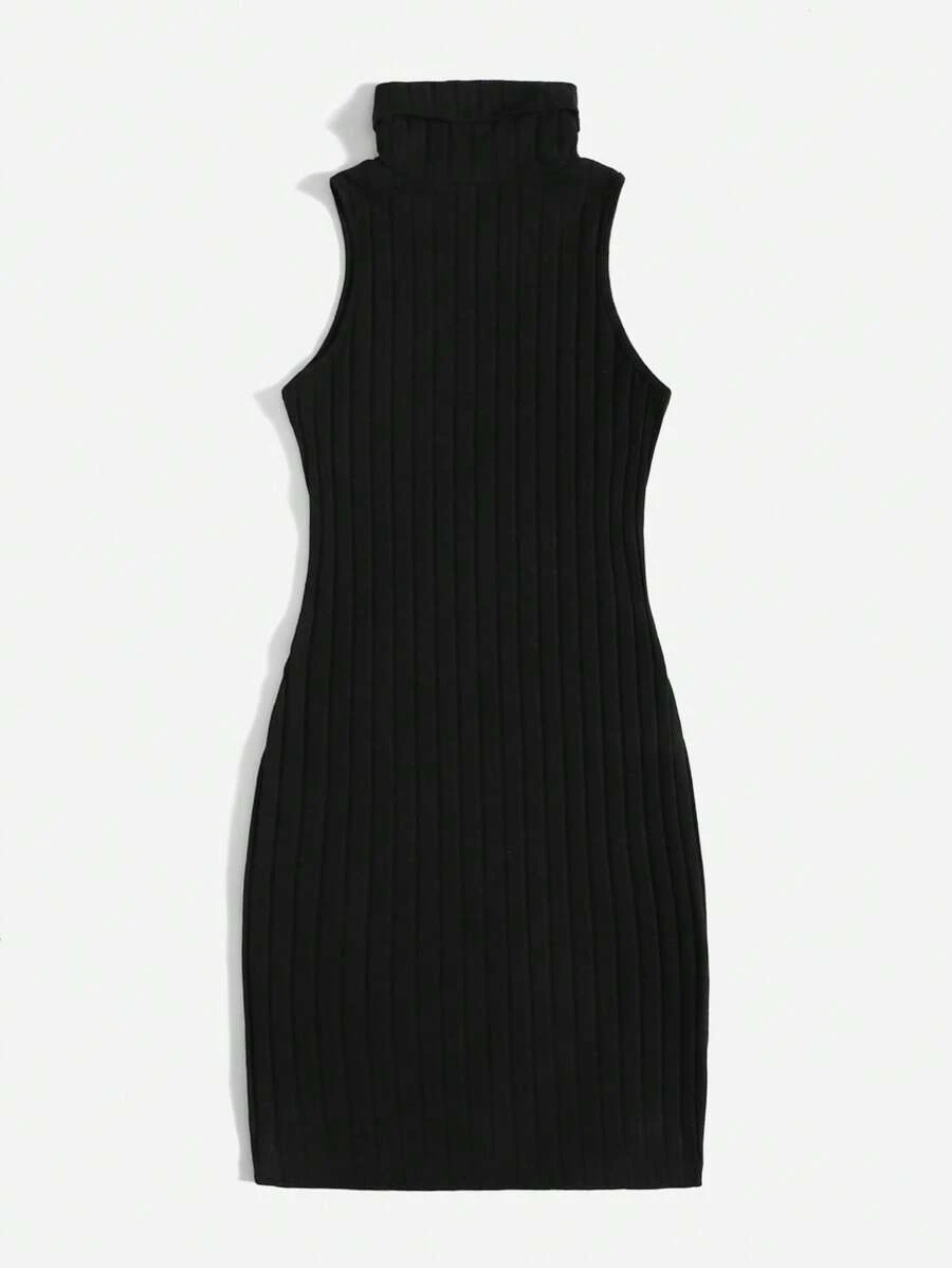 مقاس كبير فستان موحدة اللون عنق عالي محبوك مضلع
