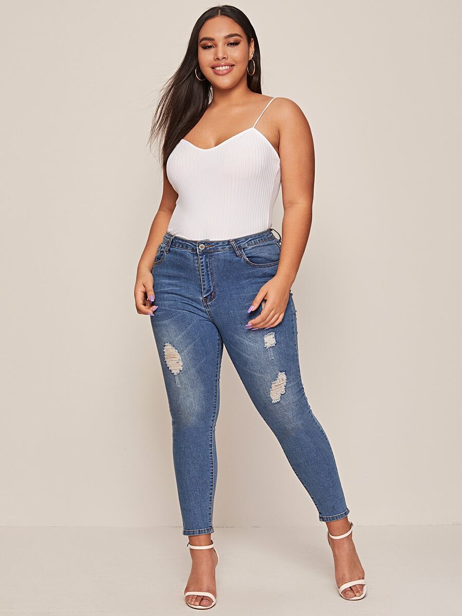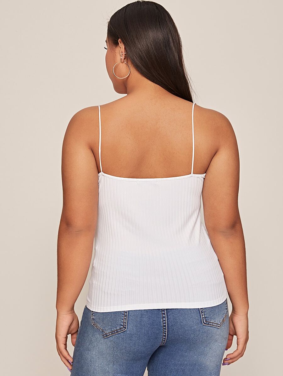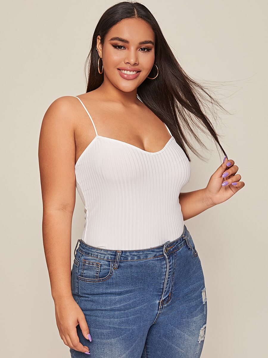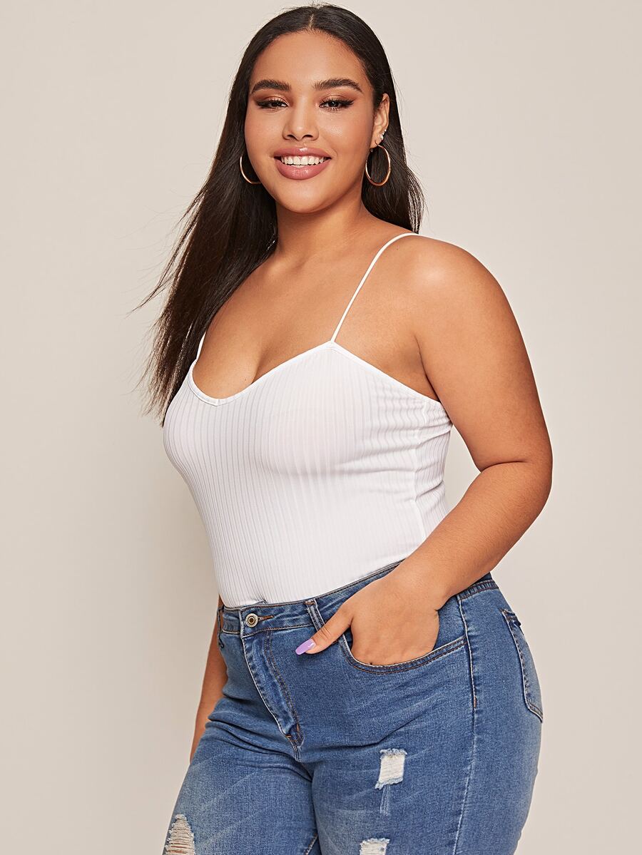 لباس علوي بحمالات نحيل محبوك وبلون موحد مقاس كبير