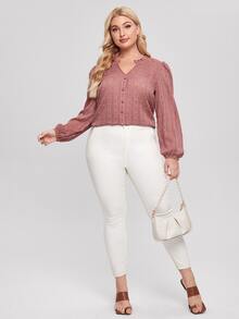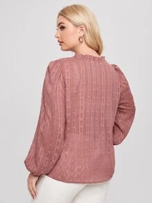 بلوزة بياقة بفتحة مقلم بكشكش بلون موحد مقاس كبير