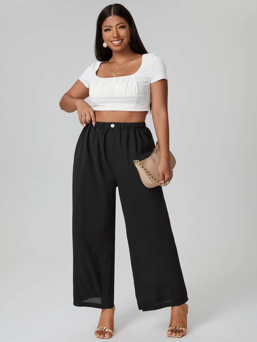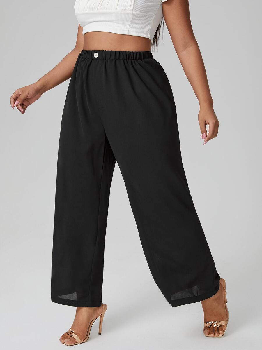 بنطلون بساق واسع بلون موحد مقاس كبير
