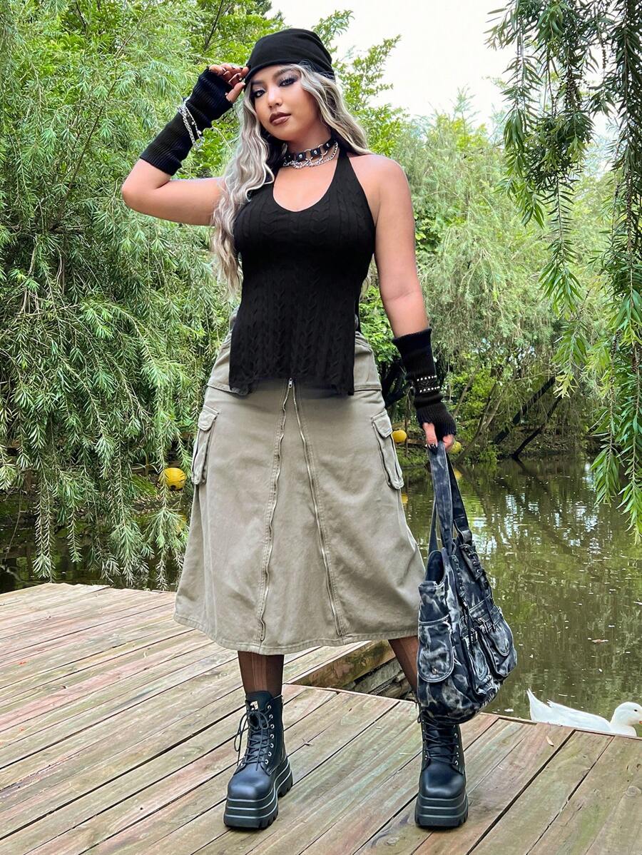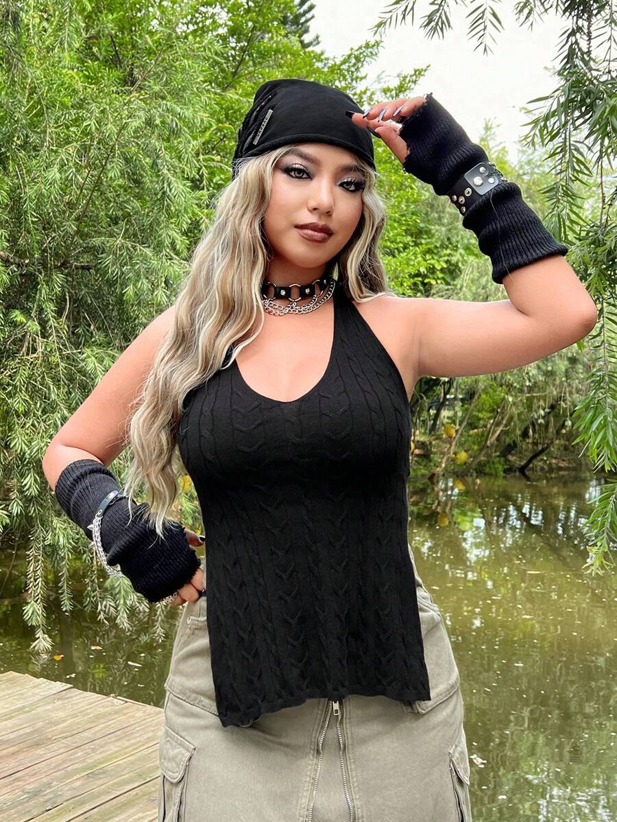 مقاس كبير بحافة شق رسن لباس علوي محبوك بدون قفازات